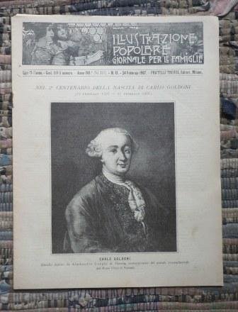Numero 8 del 24 marzo 1907 interamente dedicato a Carlo Goldoni nel 2° centenario della nascita; fascicolo spillato, in 4°, cm 29: pp. 114-128. Testo su tre colonne numerose illustrazioni. Fascicolo integro, in ottime condizioni.