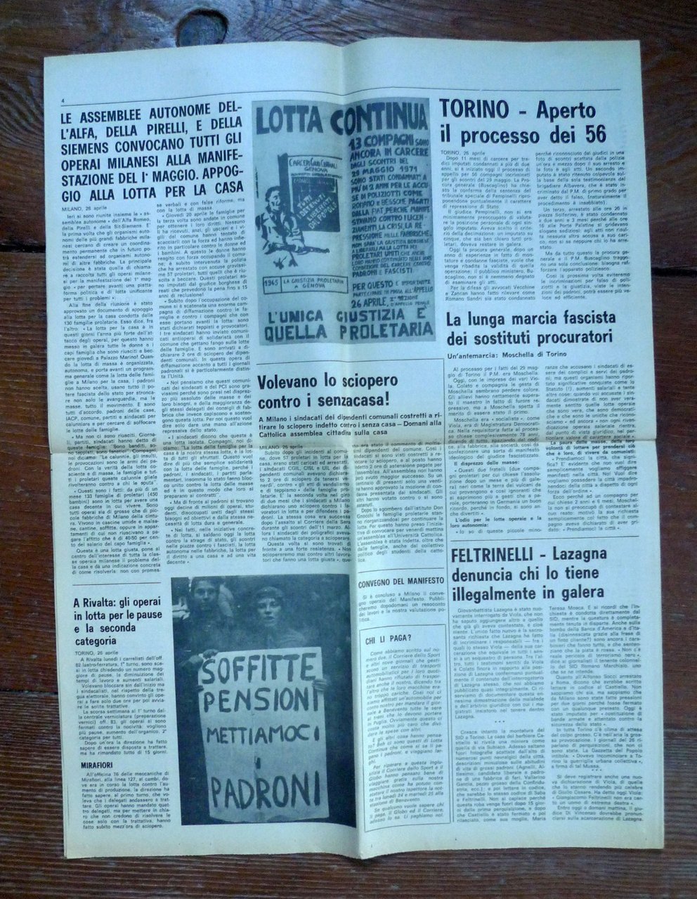 LOTTA CONTINUA Giornale QuotidianoAnno I - N.15 Giovedì 27 Aprile 1972.Direttore responsabile: Adele Cambria.58x43 cm., pp.4peso: g.300cod.10018CONDIZIONI DEL QUOTIDIANO: buone,pieghe centrali
