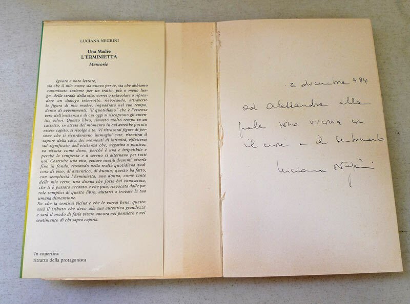 Luciana Negrini,UNA MADRE.L'ERMINIETTA.MEMORIE,'82 Ponte Nuovo[autografo,Bologna