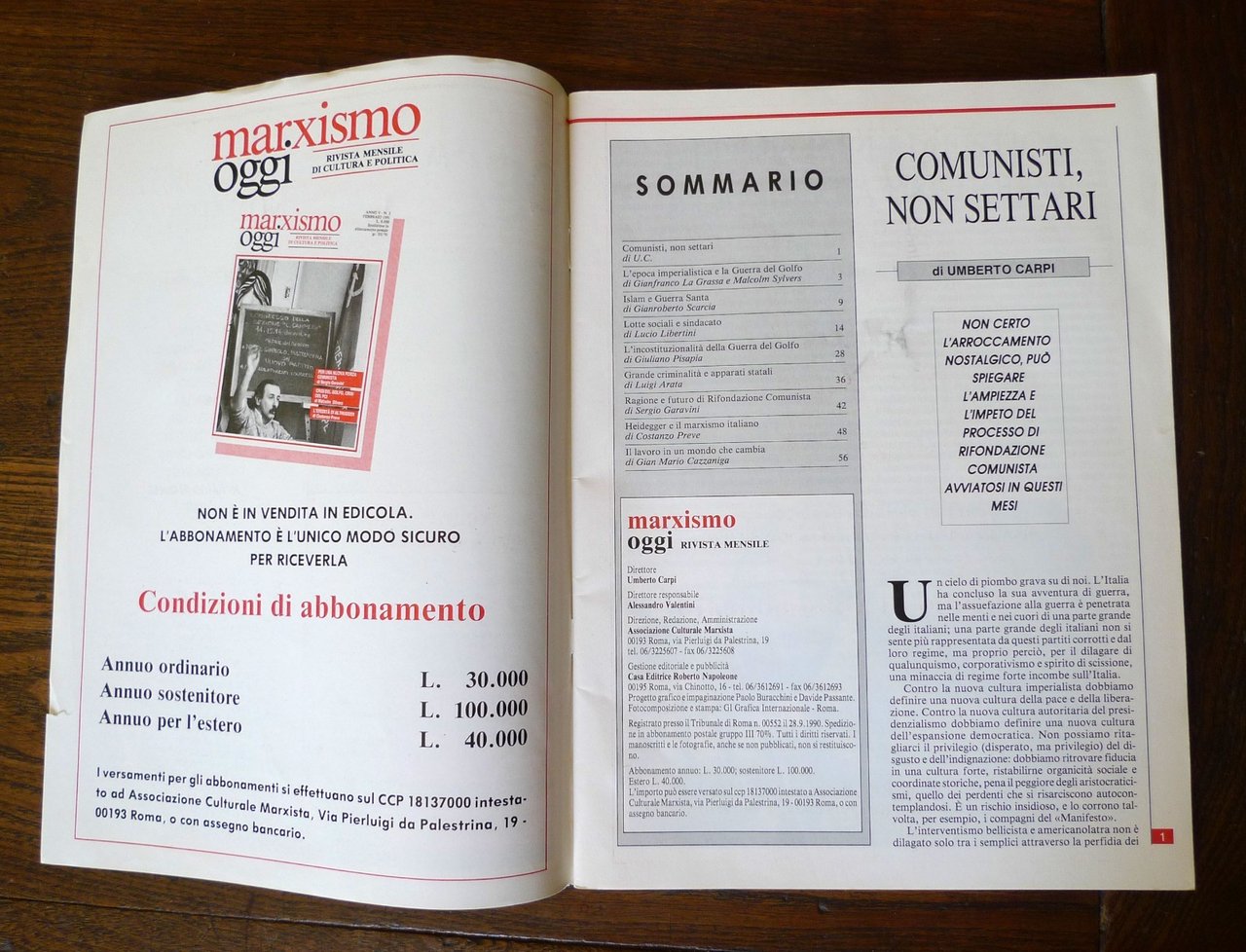 MARXISMO OGGI ANNO V n.3-4 marzo aprile 1991RIVISTA MENSILE DI CULTURA E POLITICA.Direttore: Umberto Carpi.Associazione Culturale Marxista / Casa Editrice Roberto Napoleone, Roma 1991,brossura, rilegatura con punto metallico,26,5x19,5 cm., pp.61,illustrazioni in bianco e nero,peso: g.300cod.4310CONDIZIONI DELLA RIVISTA: molto buone,strappetto ed imperfezioni alla copertina