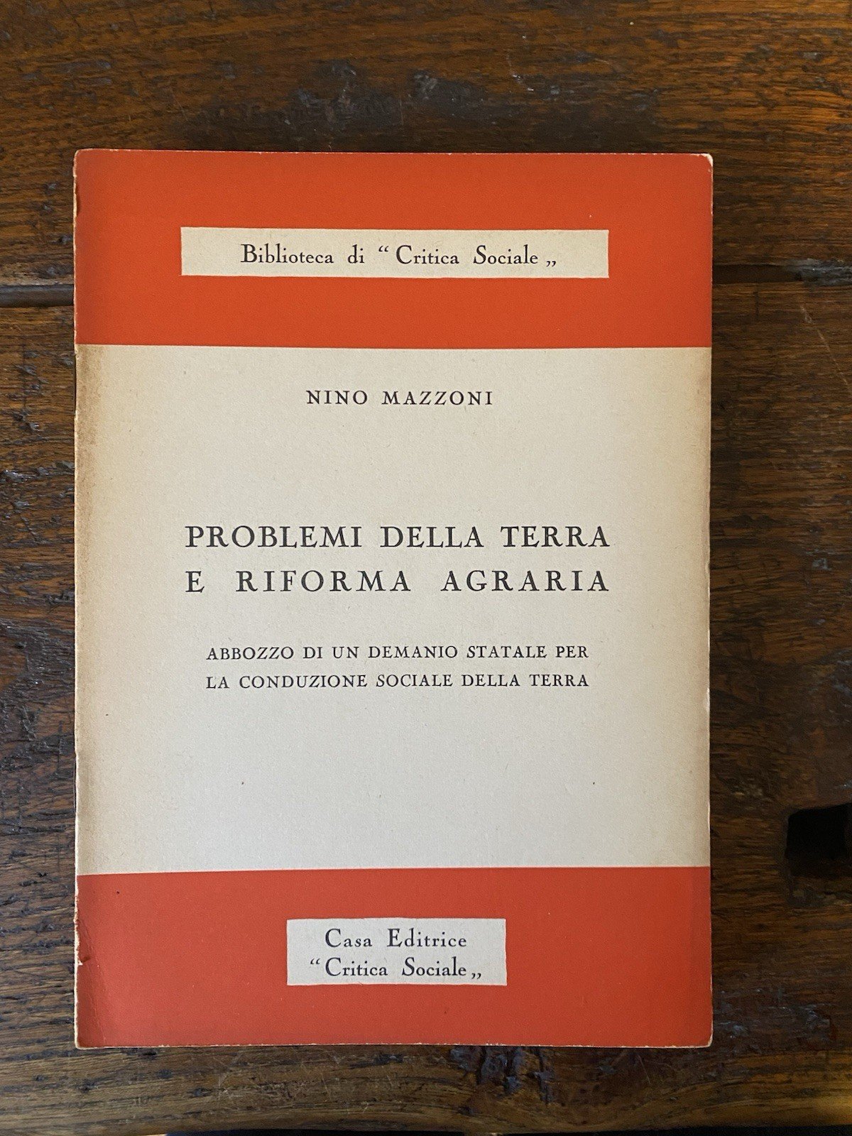 Mazzoni Nino Problemi della terra e riforma agraria Critica Sociale s.d.
