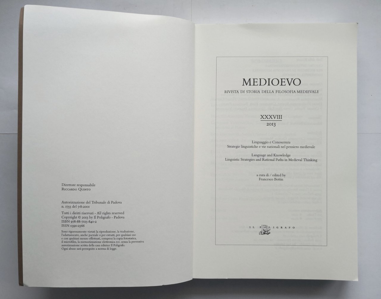 MEDIOEVO rivista di storia della filosofia medievale XXXVIII 2013 Il Poligrafo