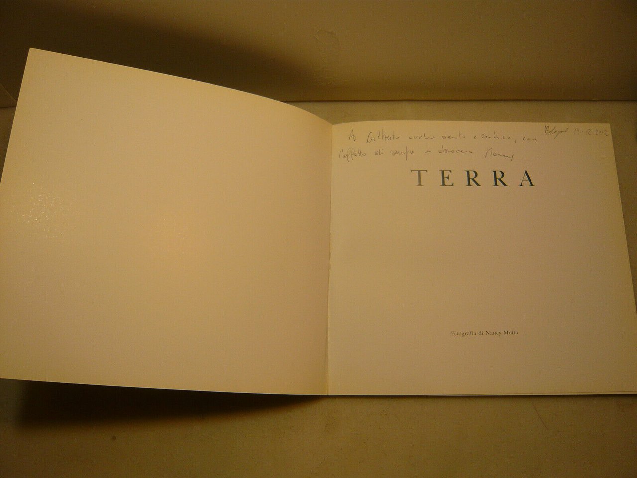 Con fotografie a colori stampate su carta plastificata, dedica in prima pagina,