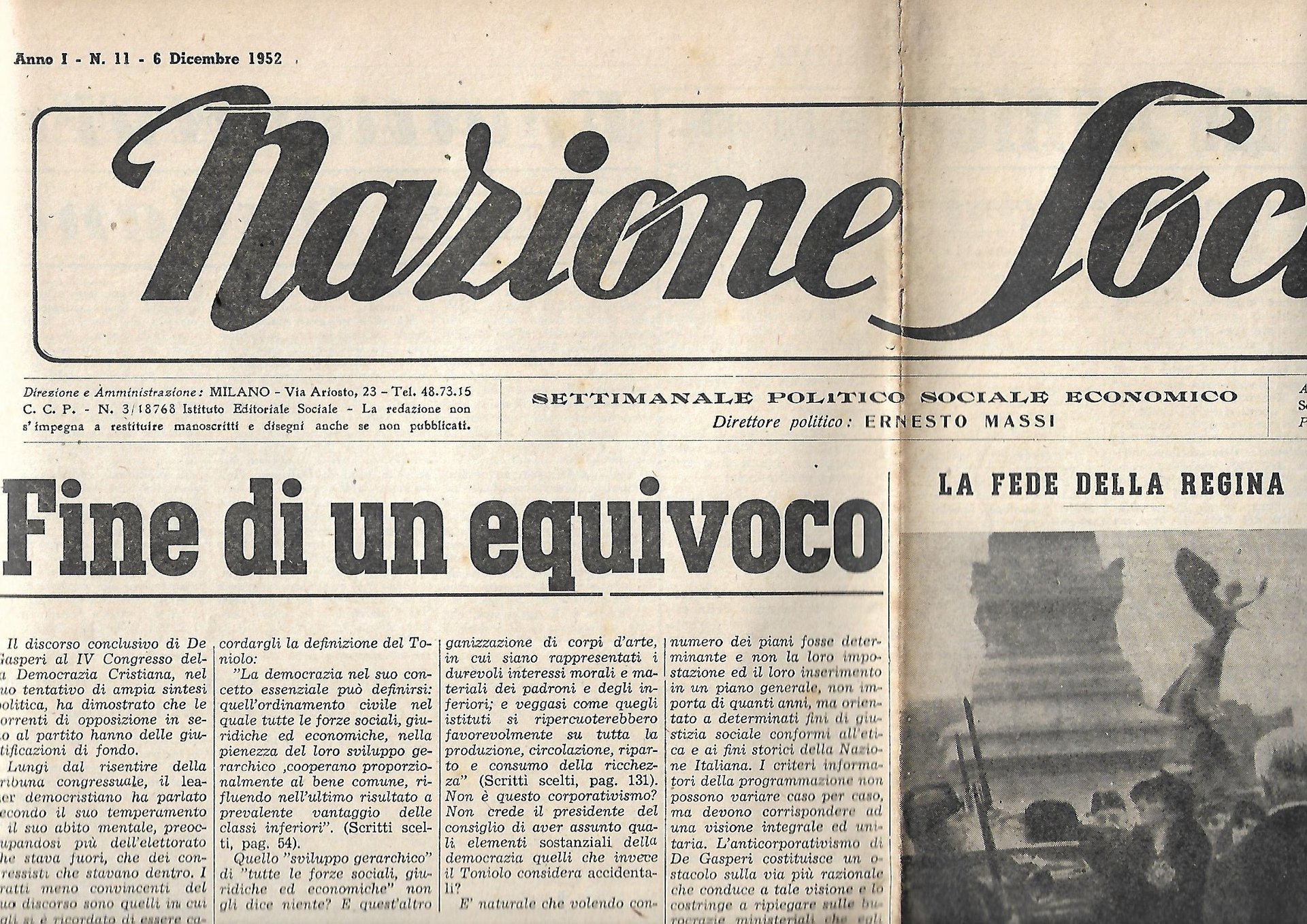 NAZIONE SOCIALE - quindicinale - ANNO I - 1952 - 3 GIORNALI N. 11-12-13