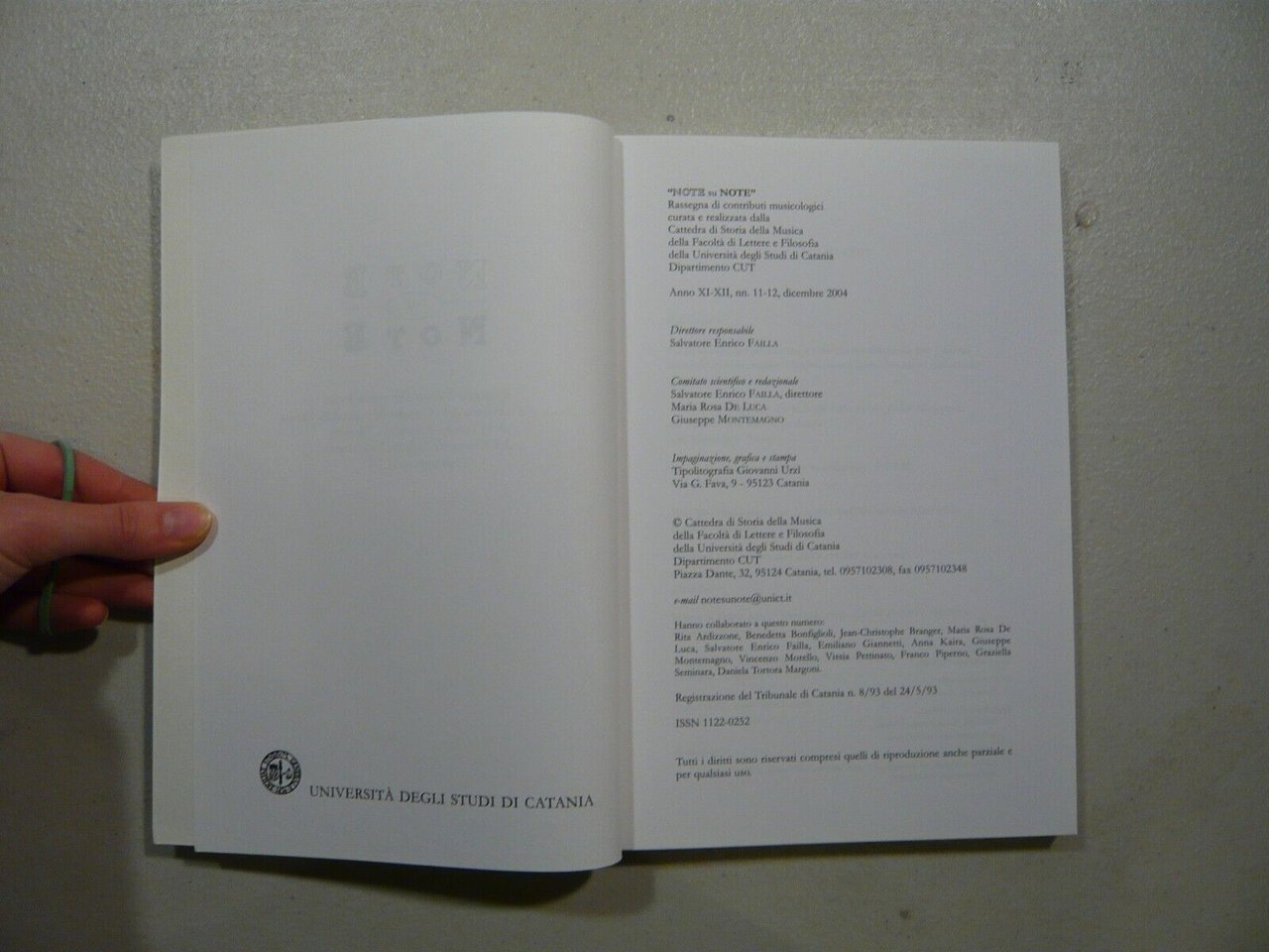 Cattedra di Storia della Musica, Catania, 2004