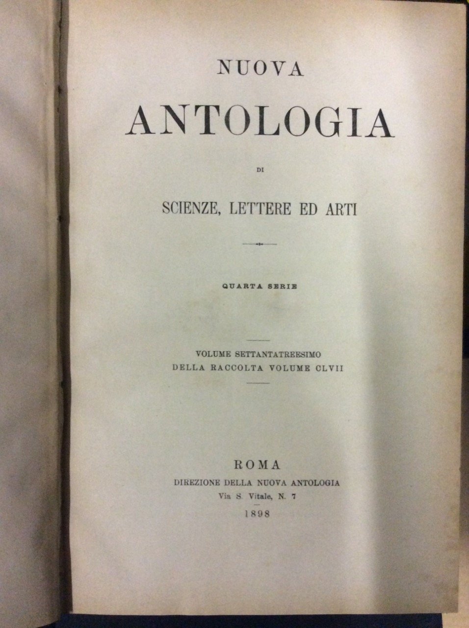 NUOVA ANTOLOGIA DI SCIENZE LETTERE ED ARTI. - Quarta serie.
