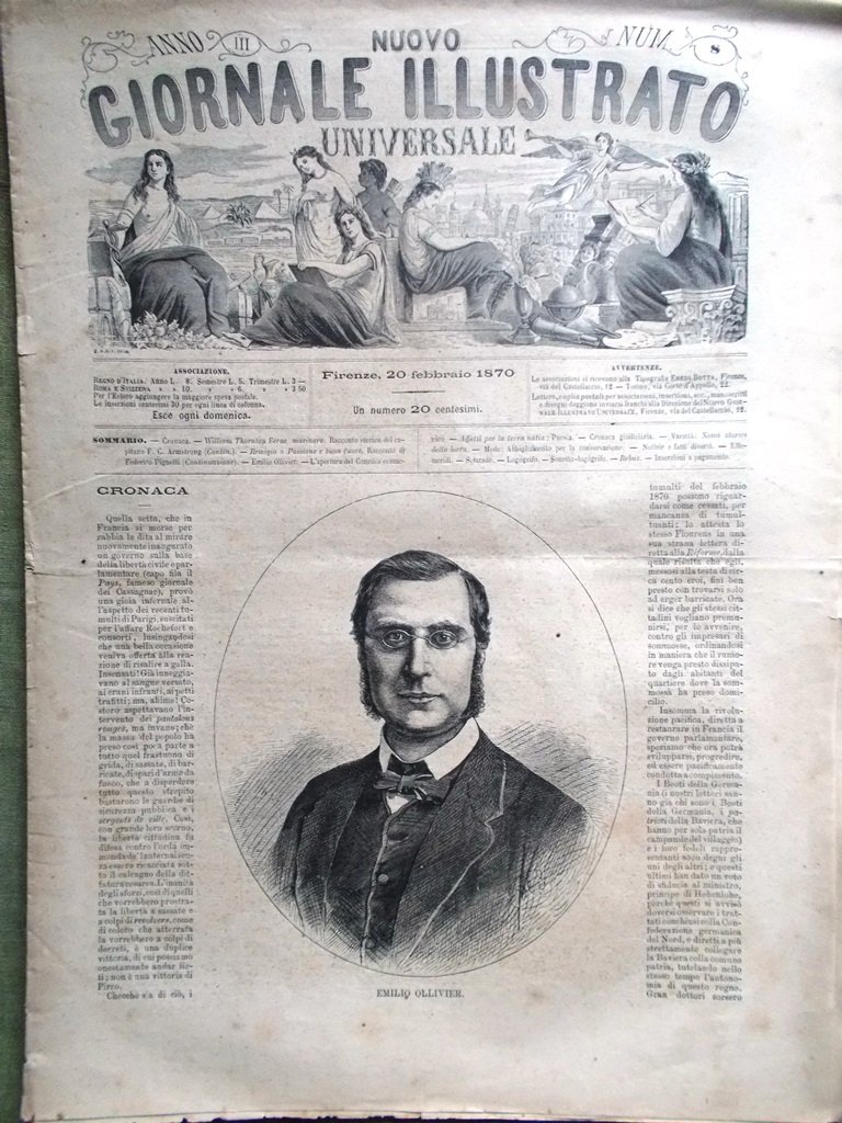 Nuovo Giornale Illustrato Universale 20 Febbraio 1870 Ollivier Birra Ecumenico