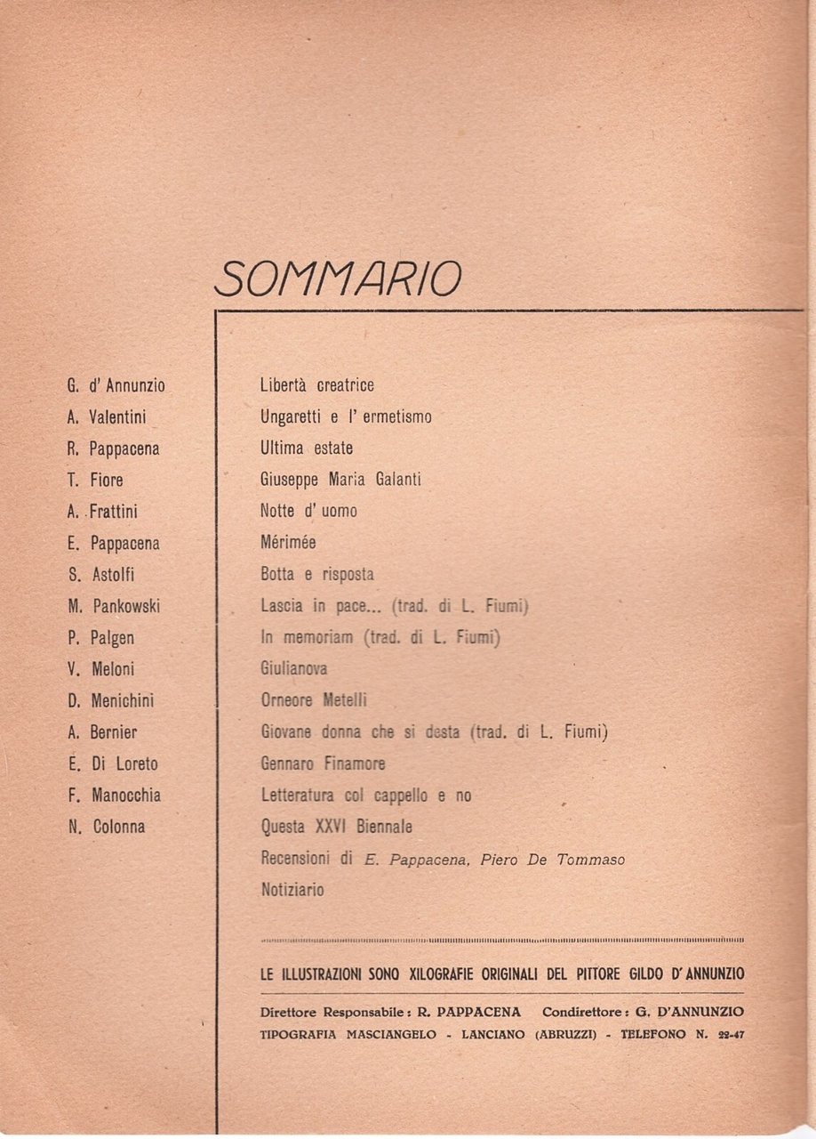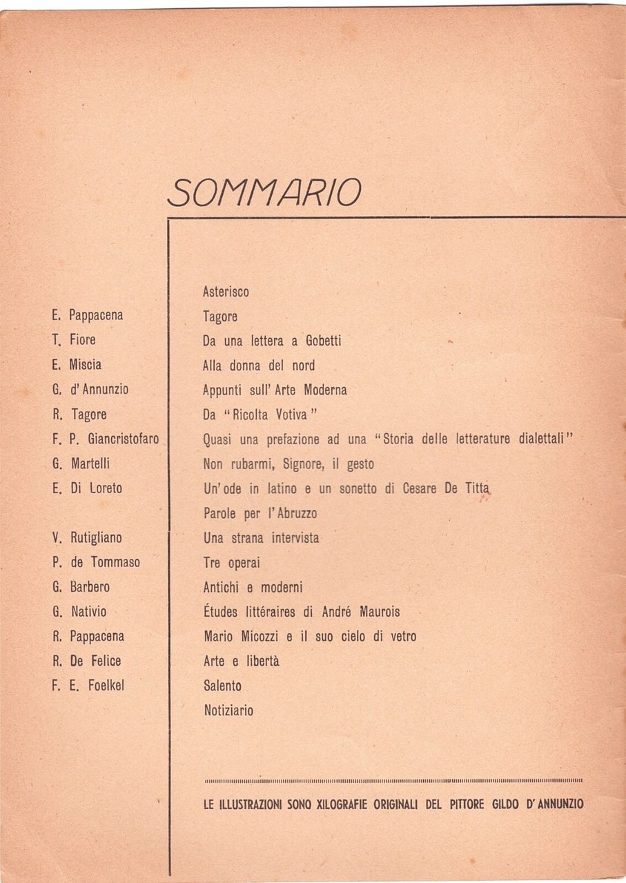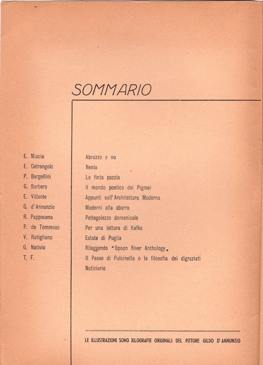 24 + 24 + 32 pagine, illustrazioni in bianco e nero nel testo. Testi di Enrico Pappacena, Tommaso Fiore, Gildo D'Annunzio, Eduardo di loreto e altri. Copertine editoriali in brossura. Stato di conservazione: molto buono (pagine normalmente ingiallite)