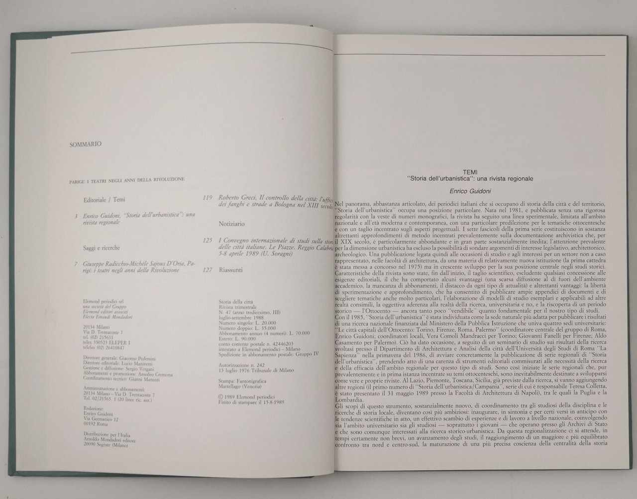 PARIGI: I TEATRI NEGLI ANNI DELLA RIVOLUZIONE. STORIA DELLA CITTA luglio-settembre 1988 Numero 47. Rivista internazionale di storia urbana e territoriale.