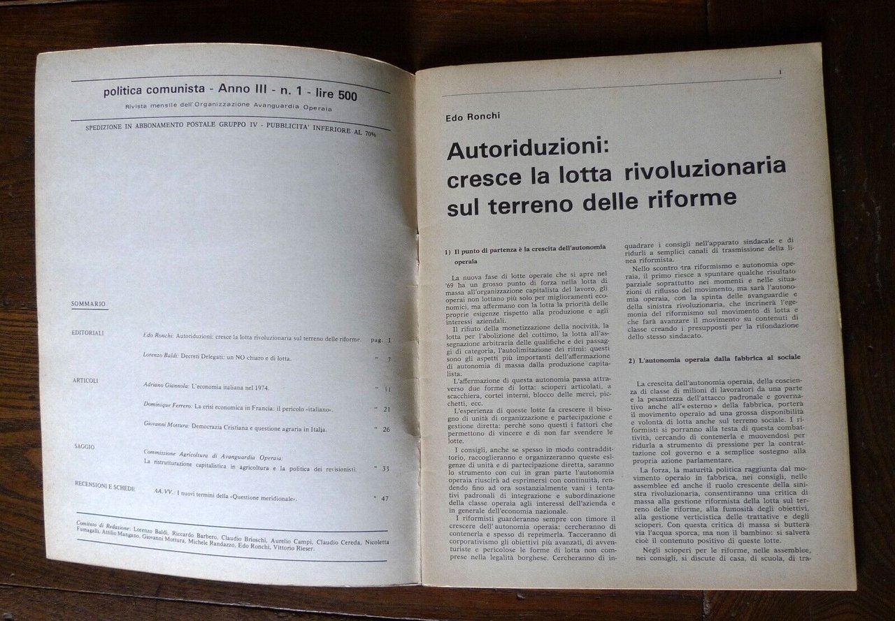 POLITICA COMUNISTA n.1 gen. 1975,Rivista mensile.Avanguardia Operaia[comunismo