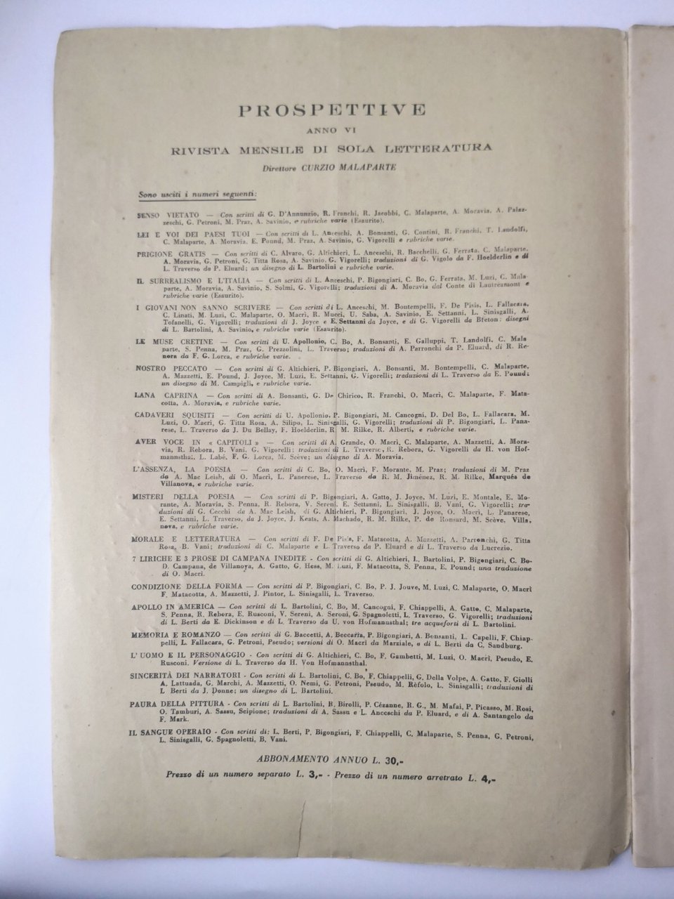 PARTICOLARI ROMANZESCHI. Prospettive, anno Vi numero 30 31. Direttore Curzio Malaparte.