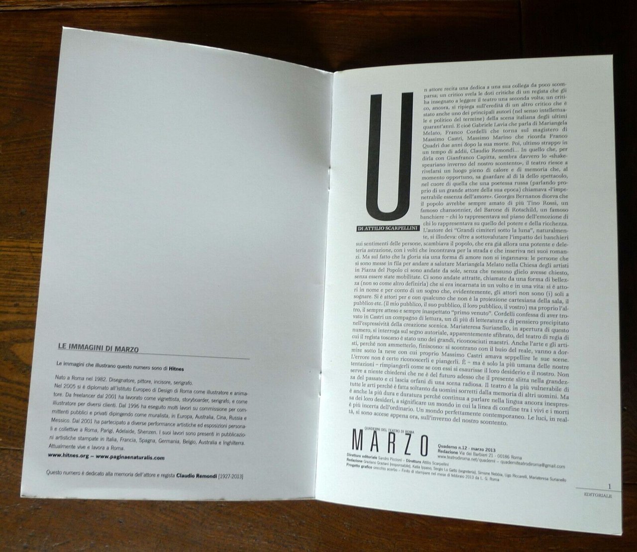 QUADERNI DEL TEATRO DI ROMA n.12 2013[Attilio Scarpellini,Franco Quadri,Lavia