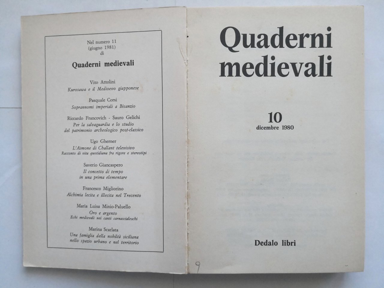 QUADERNI MEDIEVALI Numero 10 dicembre 1980 Dedalo rivista