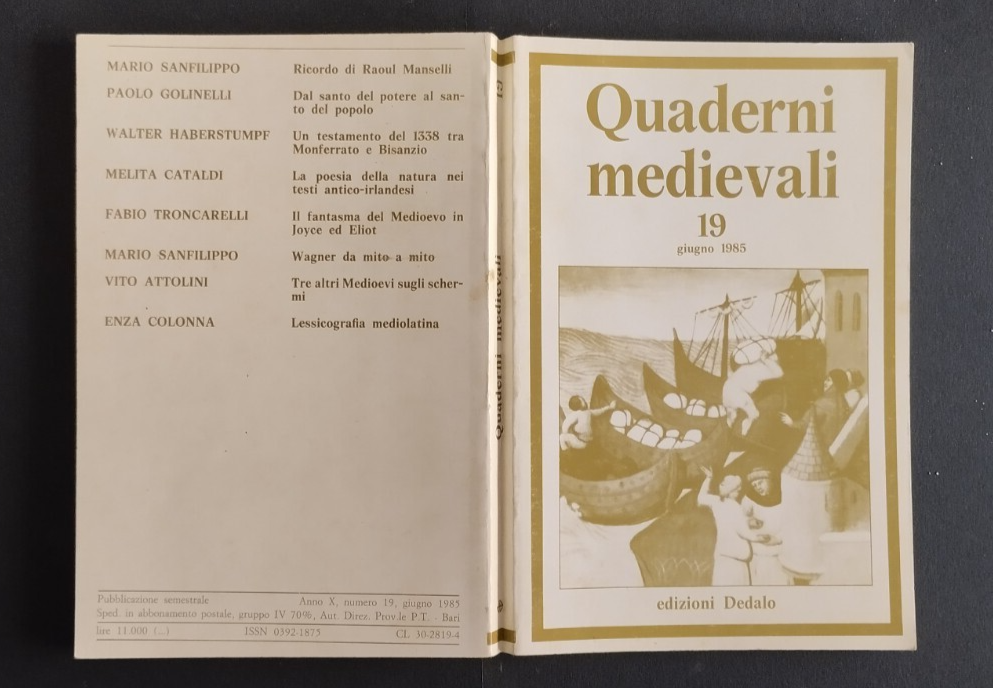 QUADERNI MEDIOVALI numero 19 di giugno 1985. Dedalo Editore, 1985 . 287 pagine. Copertina editoriale in brossura. Stato di conservazione: molto buono (pagine normalmente ingiallite) Libro usato saggistica storia medioevo