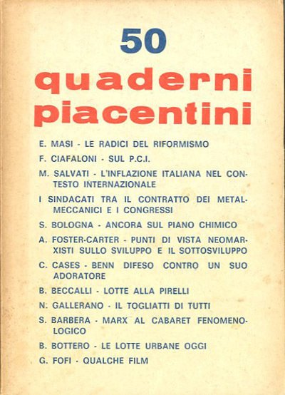 Quaderni piacentini. A. 12, n. 50, luglio 1973.