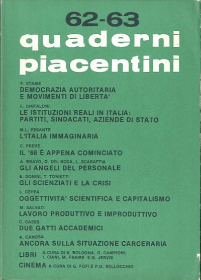 Quaderni piacentini. A. 16, n. 62-63, aprile 1977.