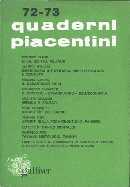 Quaderni piacentini. A. 18, n. 72-73, maggio 1979.