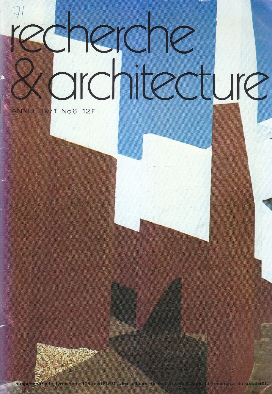RECHERCHE & ARCHITECTURE Anno 1971, numero 6 di aprile.