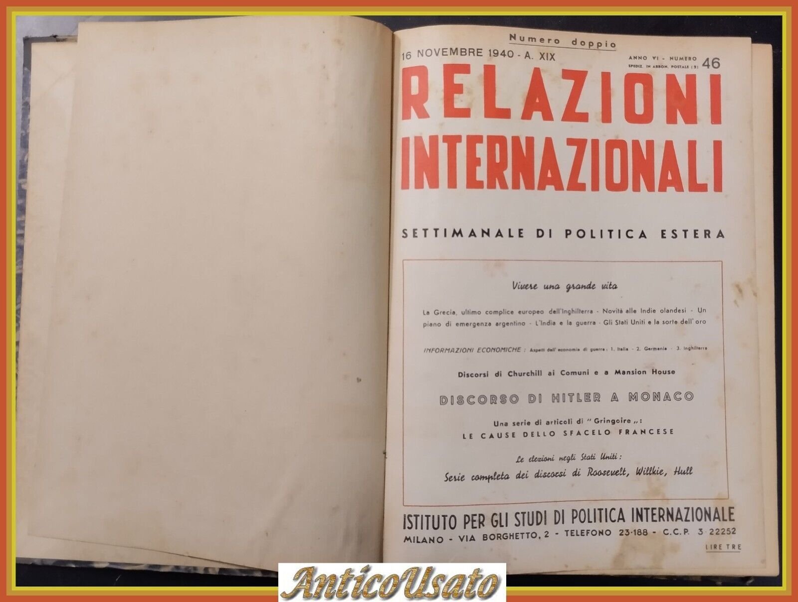 RELAZIONI INTERNAZIONALI Settimanale di Politica 1940 1941 15 NUMERI RILEGATI