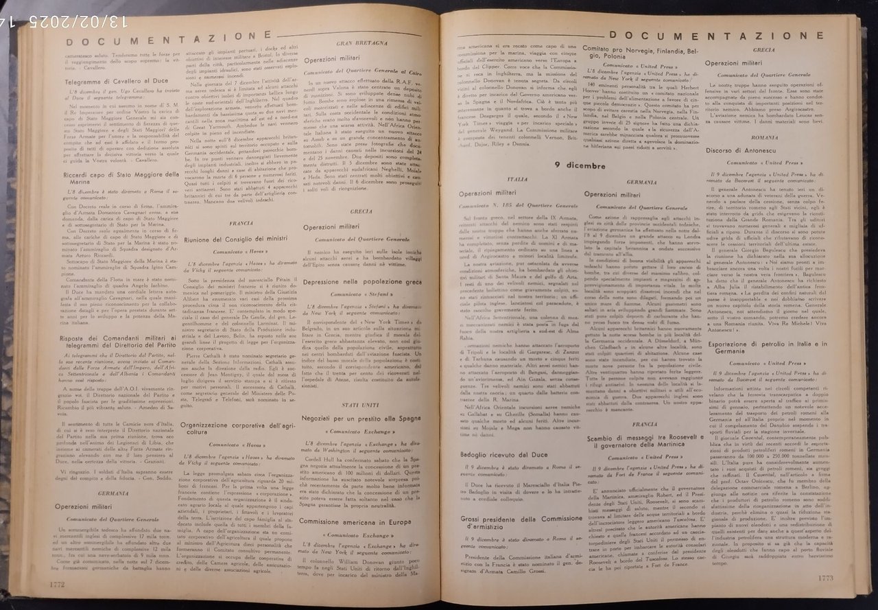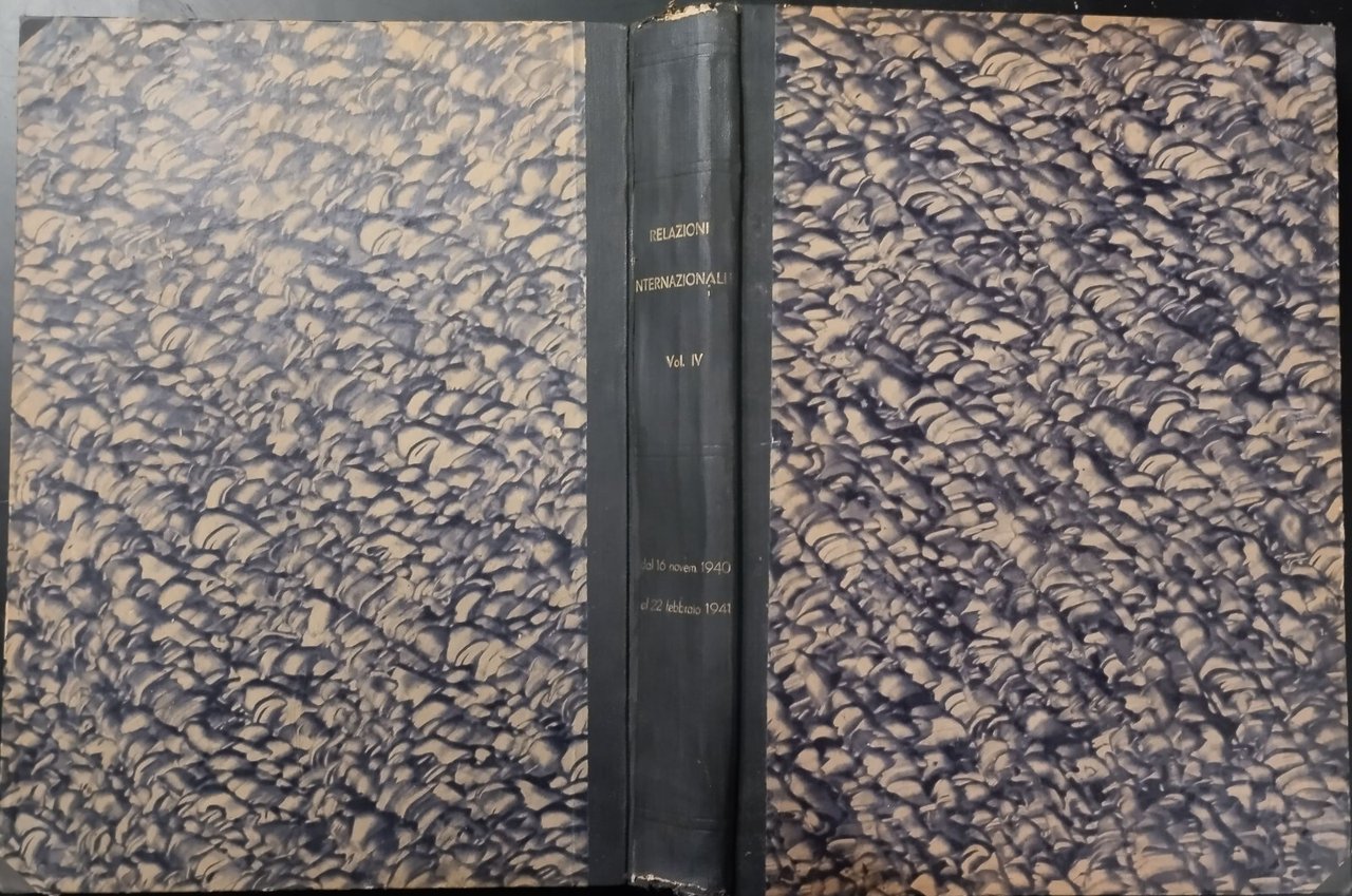 RELAZIONI INTERNAZIONALI SETTIMANALE DI POLITICA ESTERA dal numero 46 al numero 52 dell'anno 1940 , dal numero 1 al numero 8 dell'anno 1941 . Istituto per gli studi di politica internazionale, 1940 -1941 . 215 pagine( 1625 - 1840) dell'anno 1940, 255 pagine dell'anno 1941, illustrazioni in bianco e nero e a colori nel testo. Copertina editoriale in mezza tela cartonata coeva. Stato di conservazione: molto buono (pagine ingiallite) Libro usato saggistica