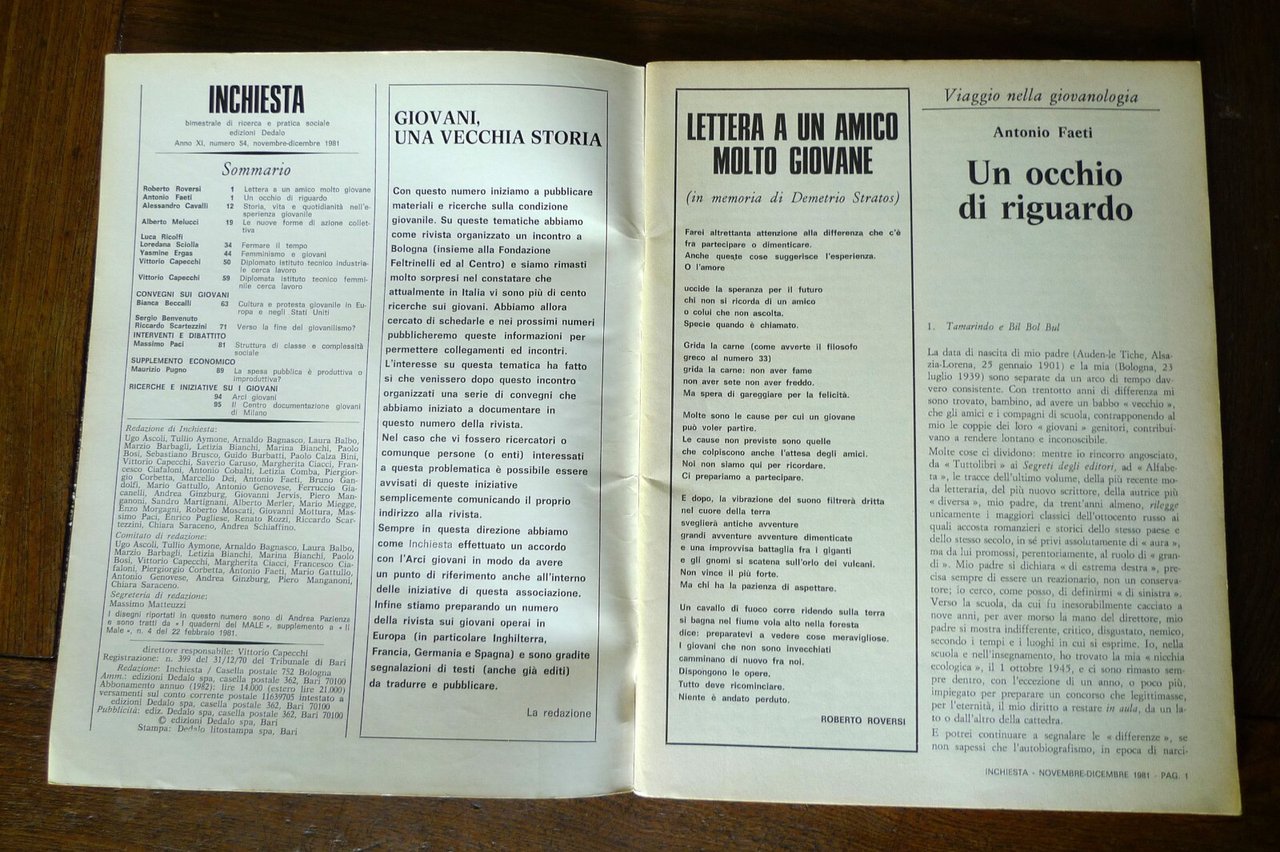 Rivista bimestrale INCHIESTA n.54 1981[politica,sociologia,condizione giovani