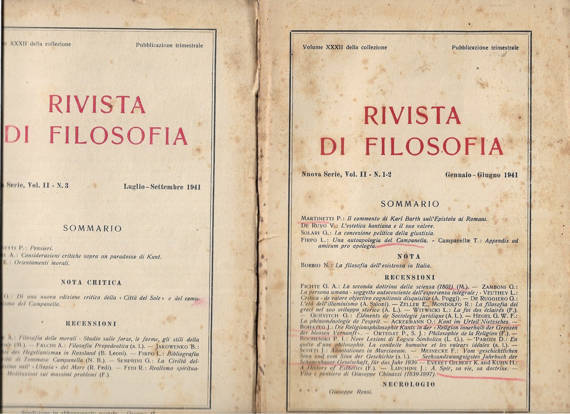Tre fascicoli - direttore Luigi Fossati - articoli e saggi di Firpo, Bobbio, Garin, Marttinetti