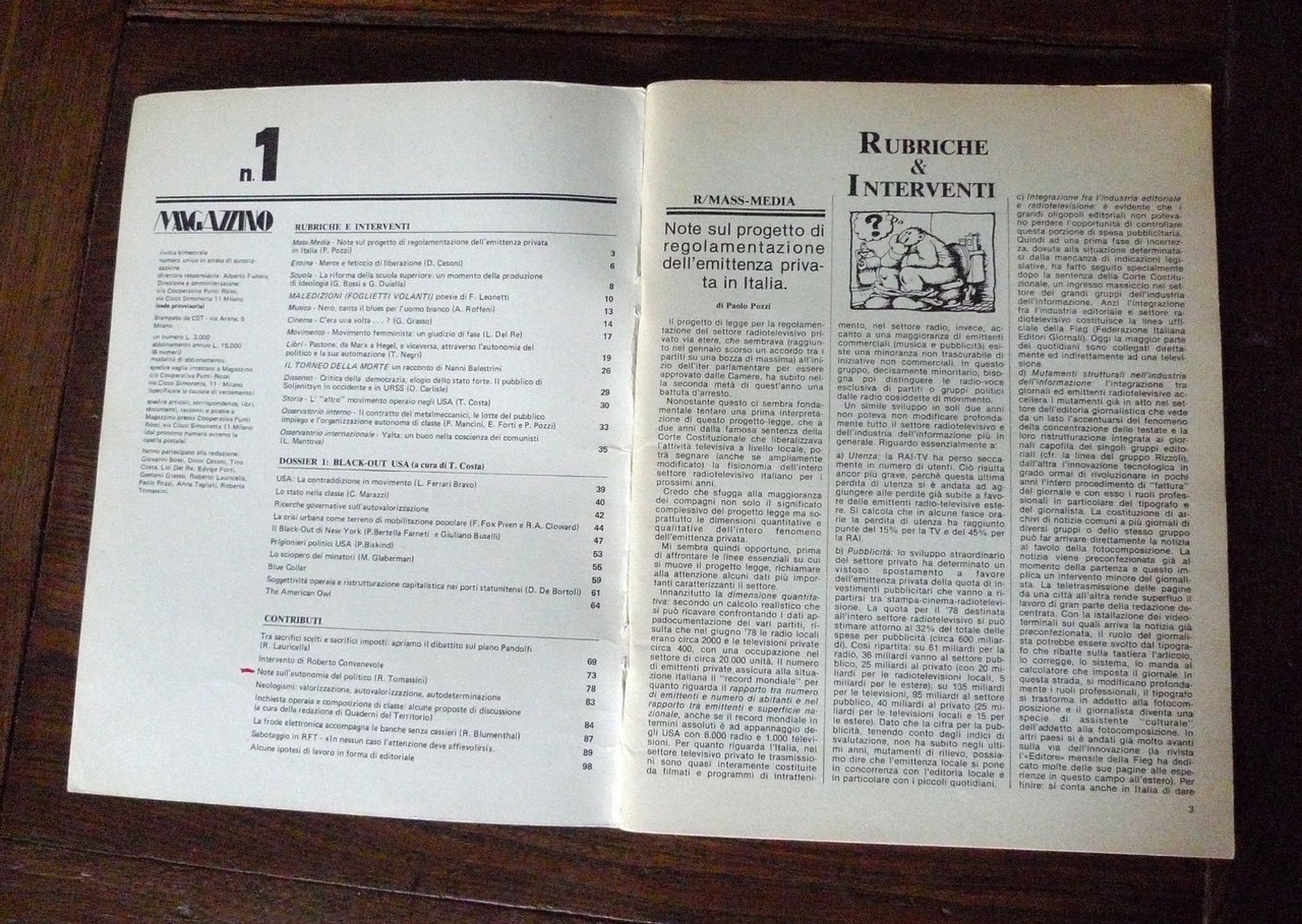 Rivista MAGAZZINO N.1 GEN.1979[Autonomia Operaia,Leonetti,Balestrini,Toni Negri