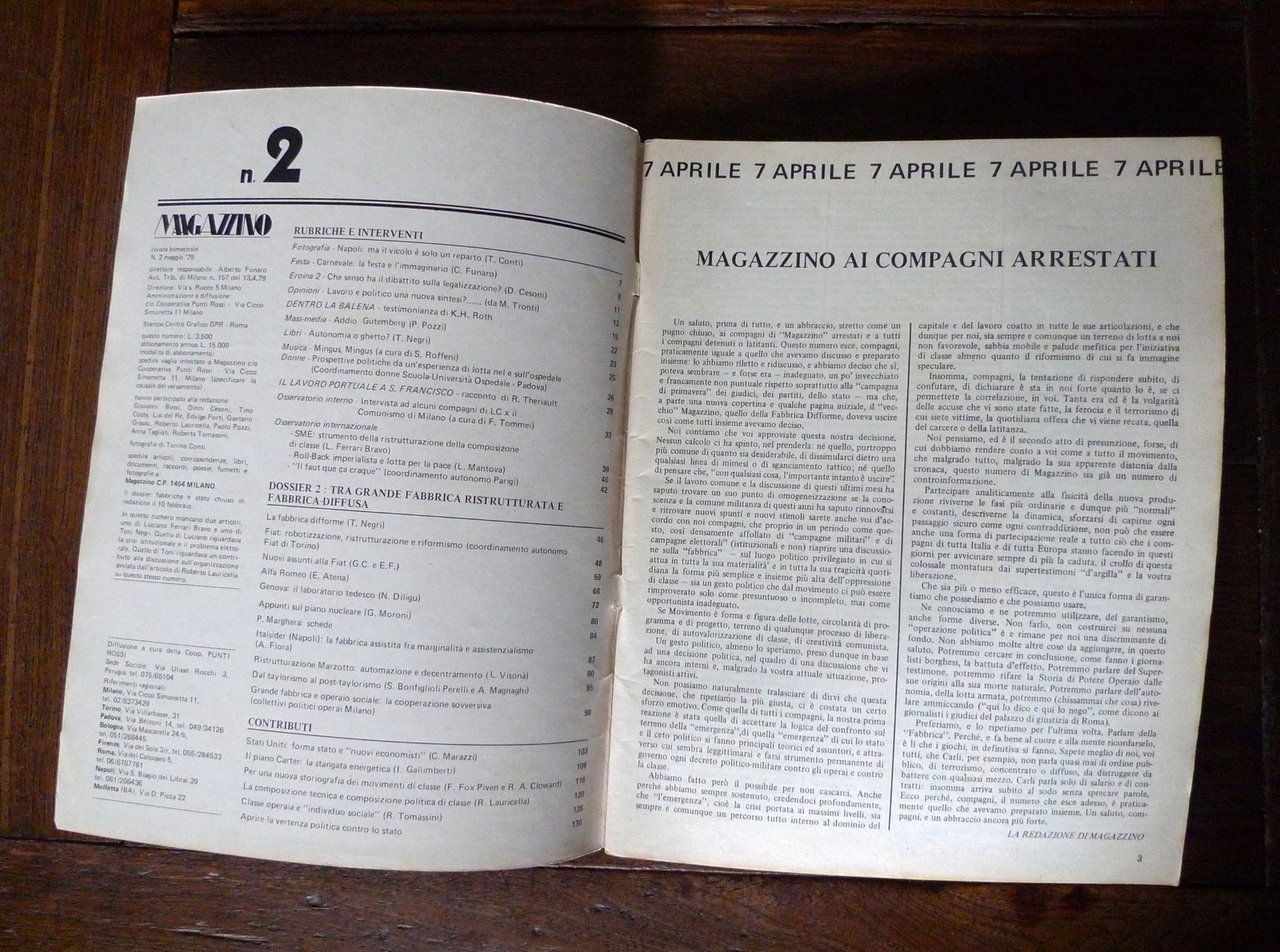 Rivista MAGAZZINO N.2 MAGGIO 1979[Autonomia Operaia,Toni Negri,7 aprile