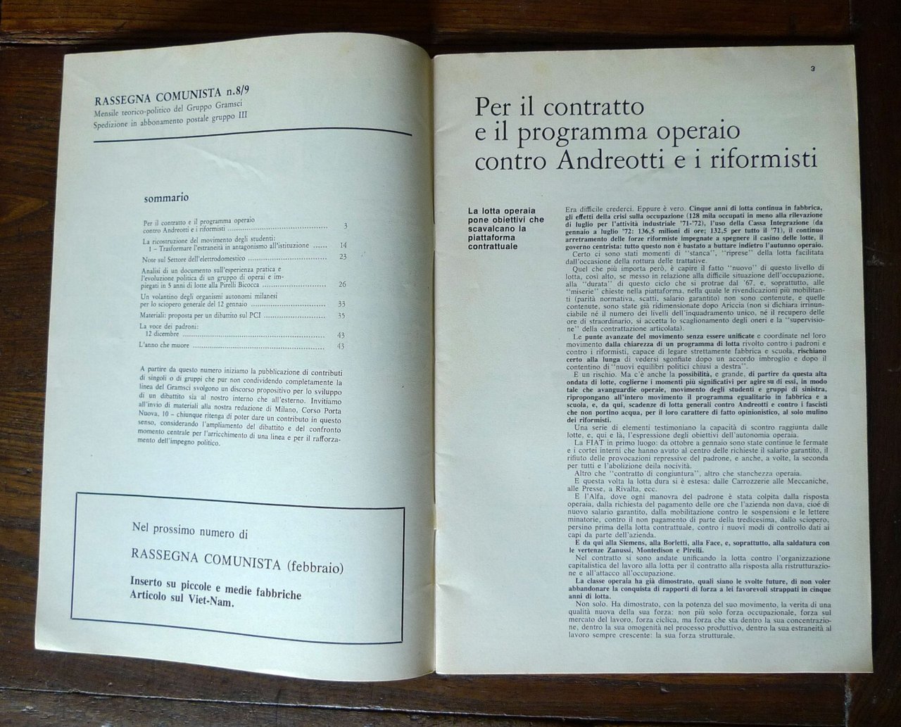Rivista RASSEGNA COMUNISTA 8-9 1972-73.Mensile teorico-politico.Gruppo Gramsci