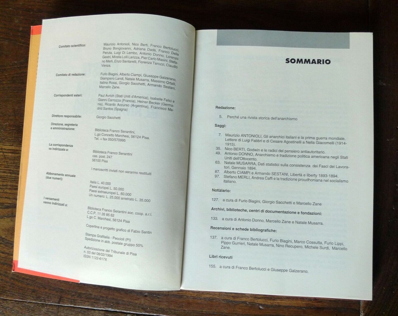 RIVISTA STORICA DELL'ANARCHISMO n.1 1994,Biblioteca Franco Serantini[anarchia