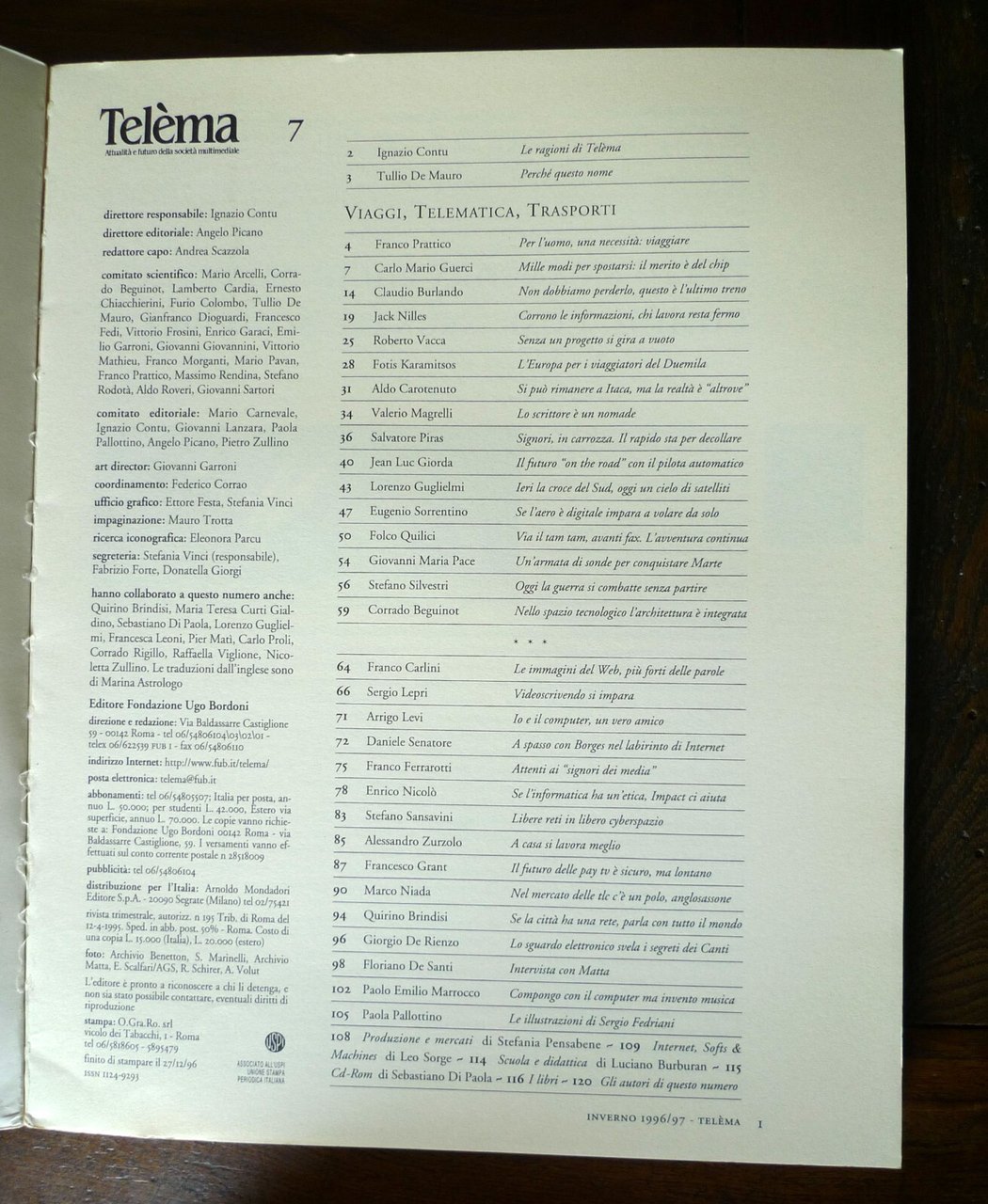 Rivista TELEMA 7 1996-97 TRASPORTI VIAGGI TELEMATICA[nuove tecnologie,multimedia