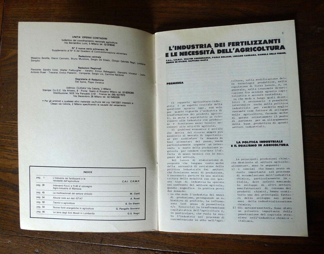 Rivista UNITÀ OPERAI CONTADINI n.2 1978[agricoltura,Controinformazione
