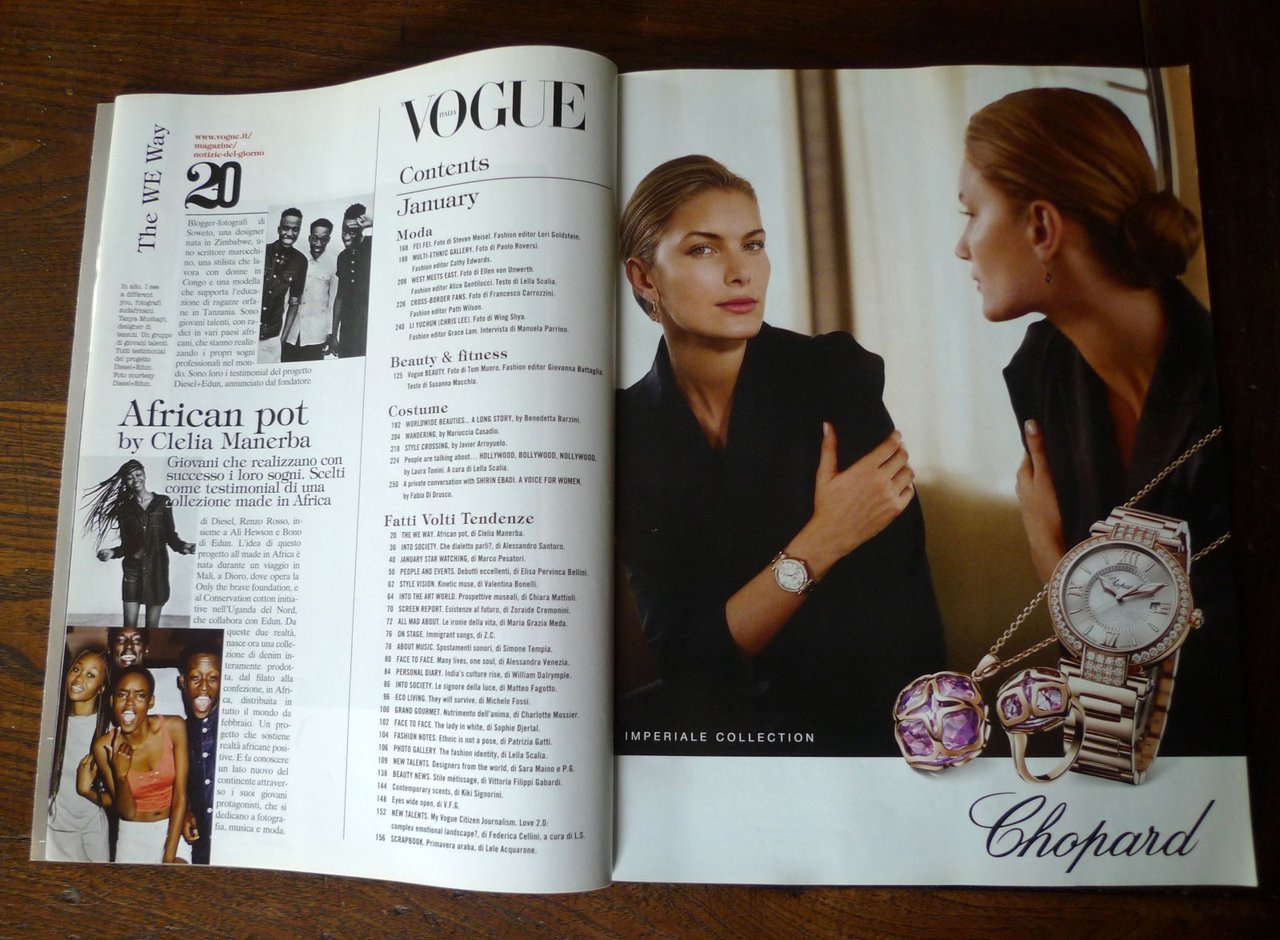 RivistaVOGUE Italia n.749 Gennaio 2013.GLOBAL.Mensile.Direttore Responsabile: Franca Sozzani.Condé Nast, Milano 2013,brossura, 27,5x21 cm., pp.254,illustrazioni fotografiche in nero e a colori,peso: g.750cod.9806CONDIZIONI DELLA RIVISTA: ottime,imperfezioni alla copertina