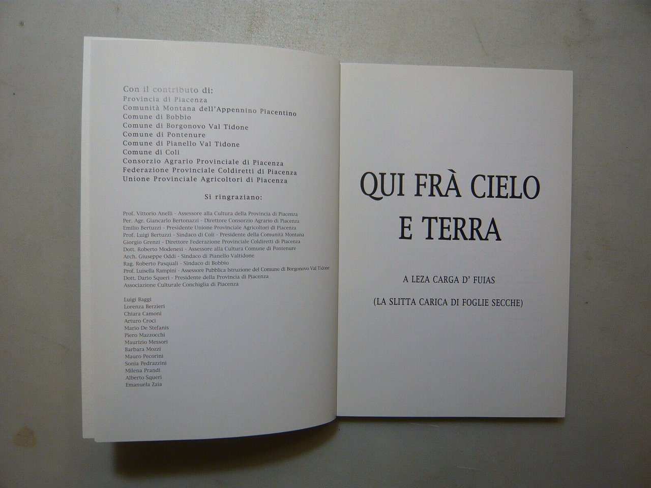 Romano Bertuzzi,QUI FRA CIELO E TERRA.A lesa carta d’fuias,Piacenza, 1999