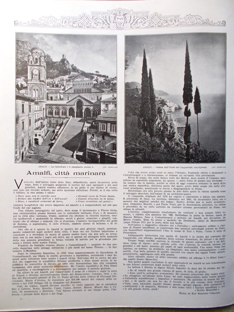 Scena Illustrata 1 Gennaio 1935 Amalfi Prati Mazzini Maddalena Linneo Capannelle