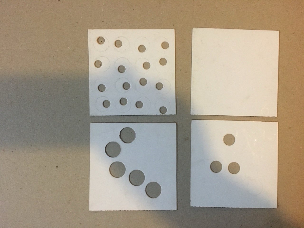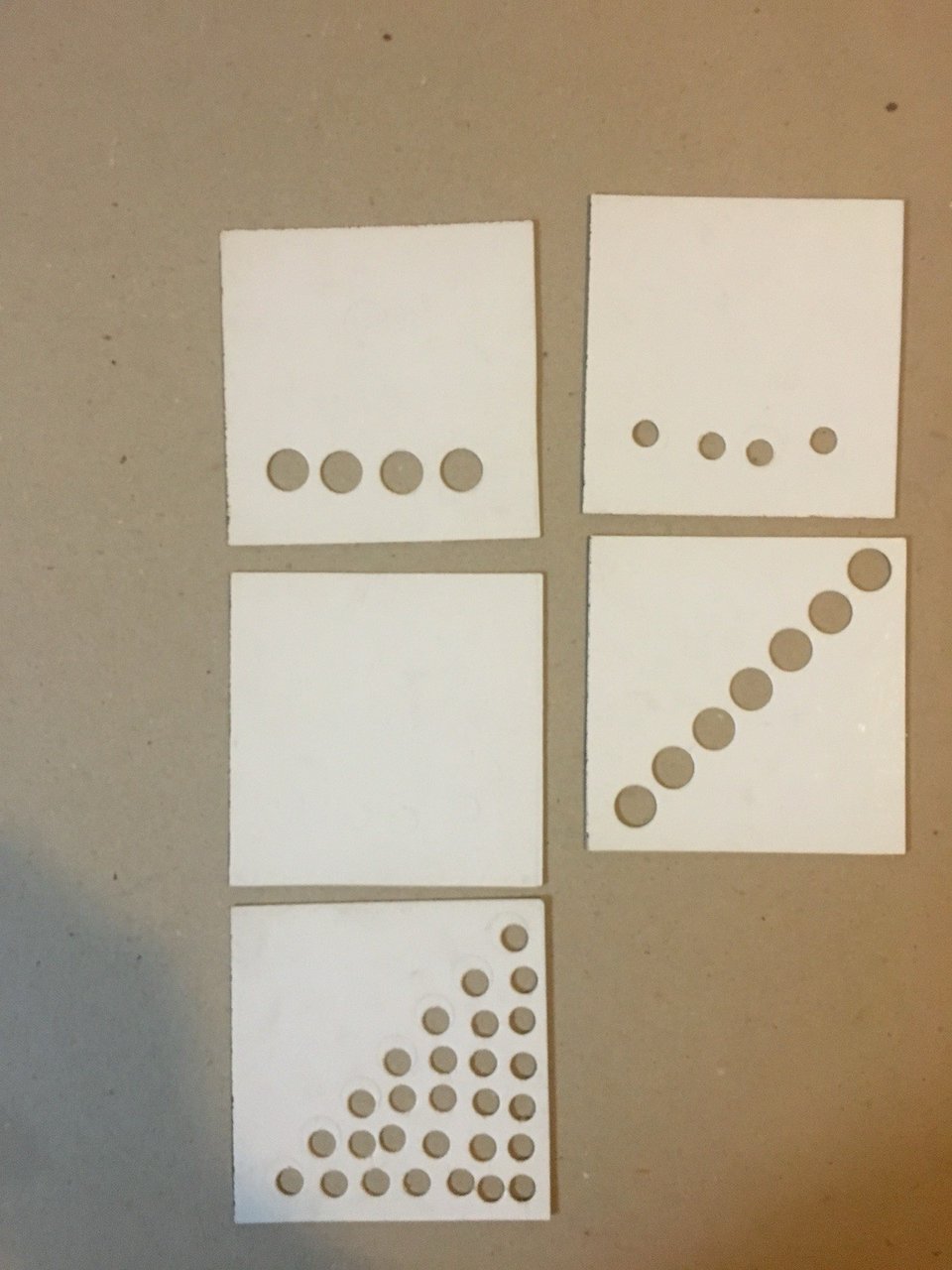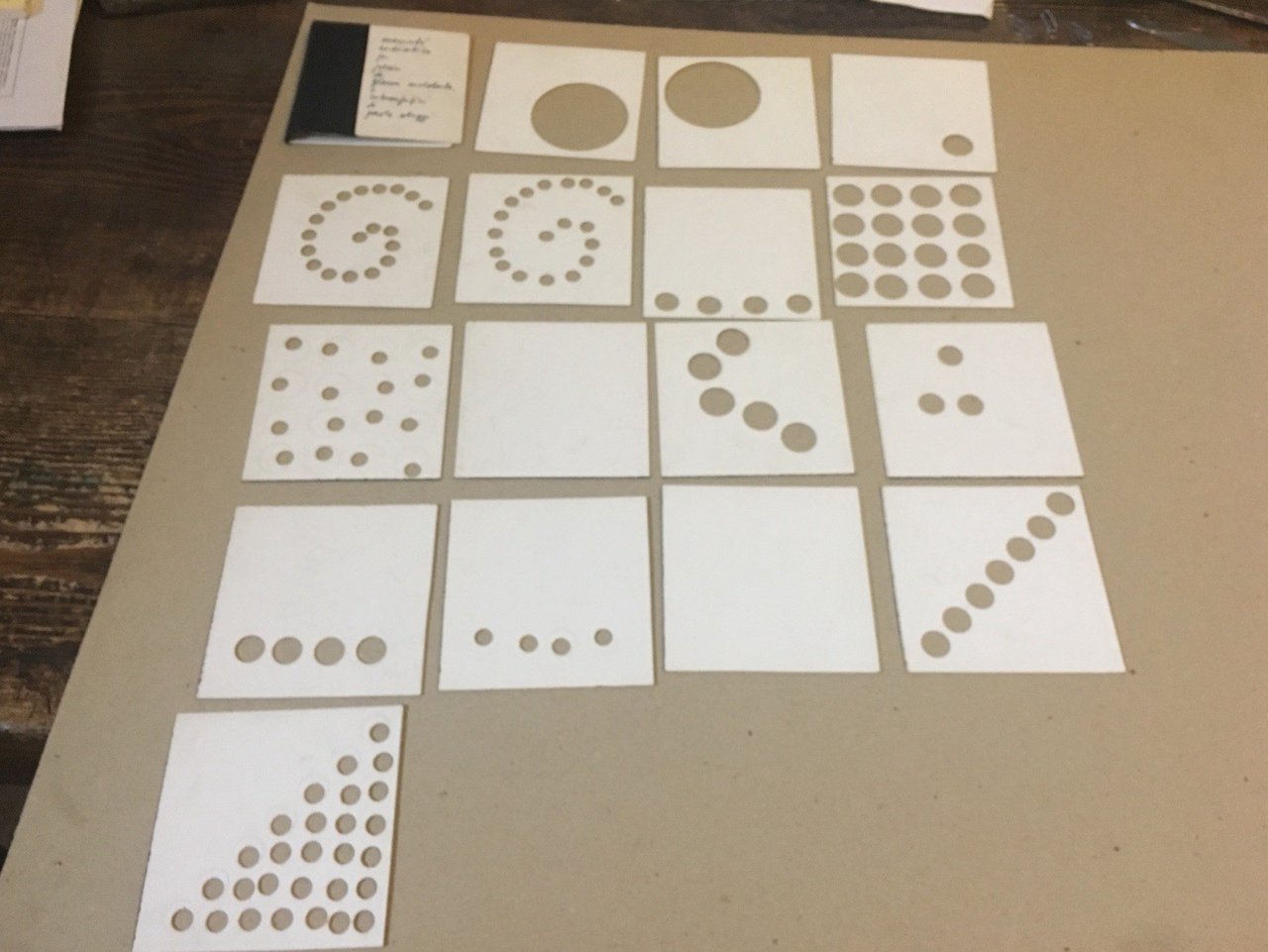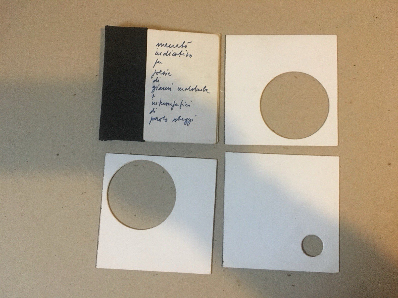 16 cartoncini fustellati originali 10 x 10 cm. contenuti in custodia cartonata telata al dorso I cartoncini furono realizzati da Paolo Scheggi per illustrare un libro di poesie di Gianni Malabarba che però non fu mai pubblicato Nota manoscritta di Paolo scheggi al fronte della custodia Ottimo stato