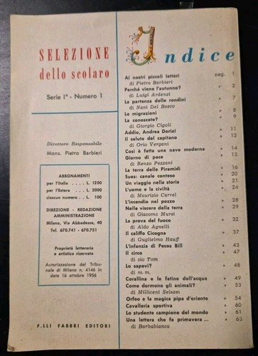 SELEZIONE DELLO SCOLARO anno I numero 1 novembre 1956 Fabbri giornale scolastico