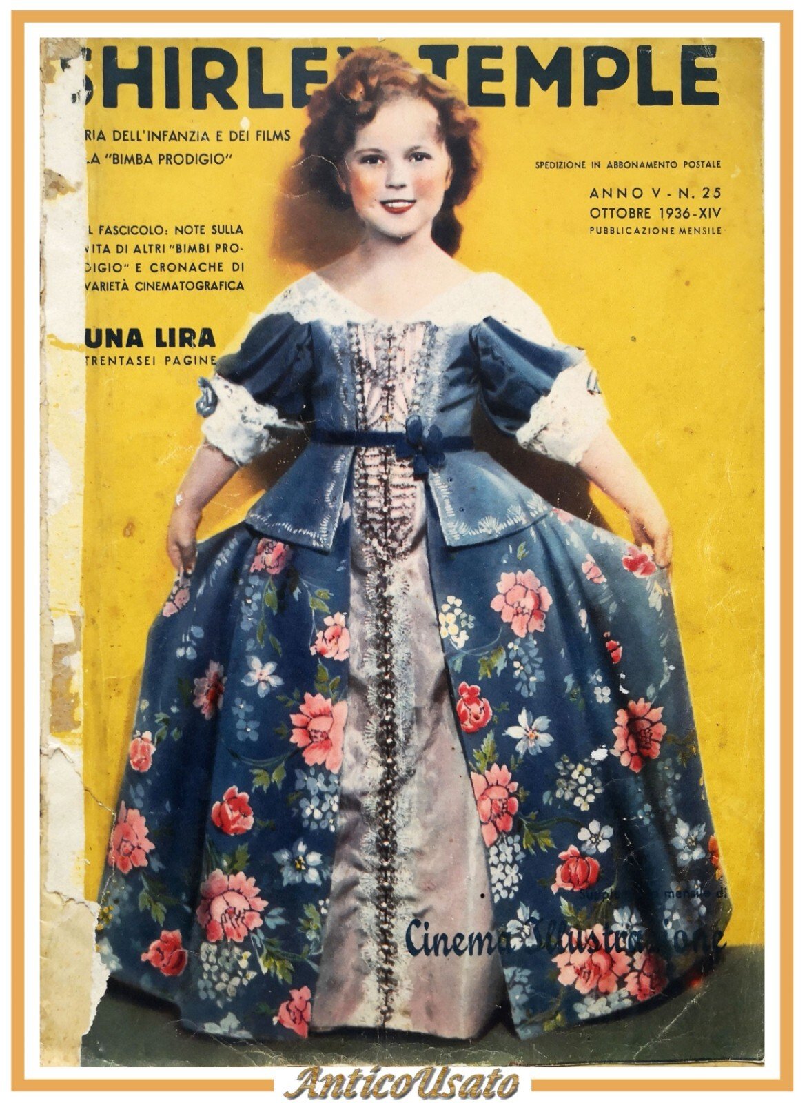 SHIRLEY TEMPLE Storia dell'infanzia e dei film della bimba prodigio. Editore Rizzoli. Supplemento mensile a "Cinema Illustrazione". anno V numero 25, ottobre 1936. 34 pagine, illustrazioni monocromatiche nel testo. Copertina editoriale in brossura. Stato di conservazione: buono (pagine normalmente ingiallite, copertina molto sciupata, piccola mancanza a pagina 3) Libro usato biografia