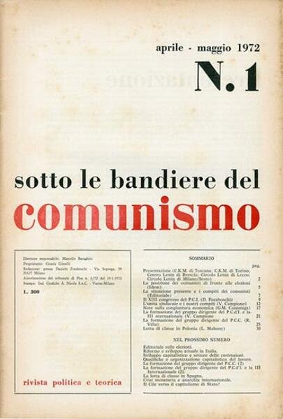 Sotto le bandiere del comunismo (collezione completa 1972-75). Rivista politica e teorica a cura dell'Organizzazione dei lavoratori comunisti.