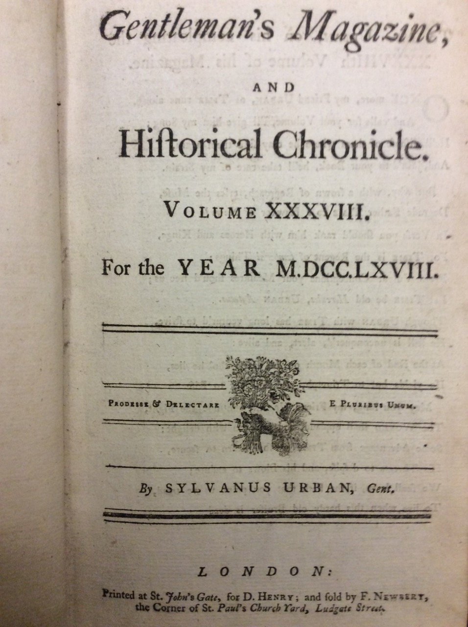 THE GENTLEMAN'S MAGAZINE AND HISTORICAL CHRONICLE. - By Sylvanus Urban. Volume XXXVIII for the year MDCCLXVIII.