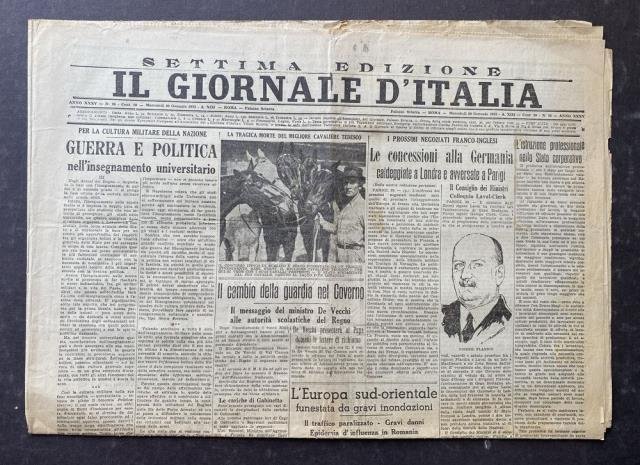 Il Giornale d'Italia è stato un quotidiano italiano con sede a Roma, fondato nel 1901 da Sidney Sonnino e Antonio Salandra. Fu chiuso nel 2006. Disponiamo di 2 numeri che vendiamo in unico lotto (20.00 € cadauno - per numeri singoli invitiamo a contattarci direttamente). 10 Dicembre 1921 30 gennaio 1935.