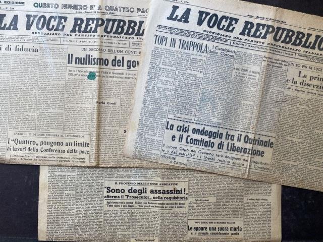 Disponiamo dei seguenti 3 numeri che vendiamo in unico lotto (5.00 € cadauno - per numeri singoli invitiamo a contattarci direttamente). 27 Novembre 1945 26 Settembre 1946 30 Novembre 1946.