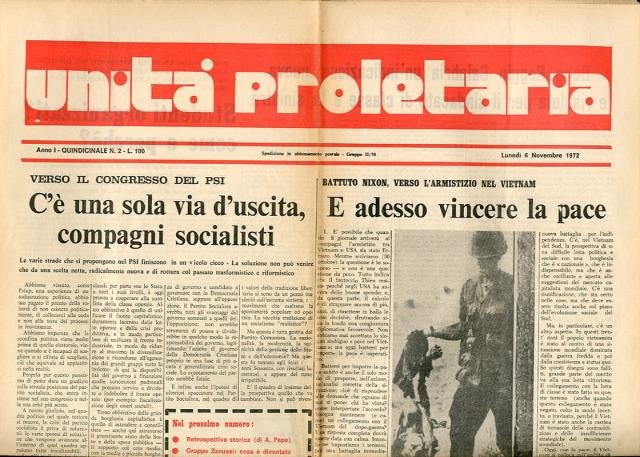 Unità proletaria: quindicinale del nuovo PSIUP-sinistra MPL (38 numeri degli anni 1972-1974).