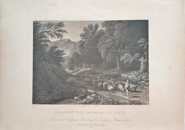 1835 Stampa Antica Originale- Landscape With Shepherd And Flock By G. Poussin-33