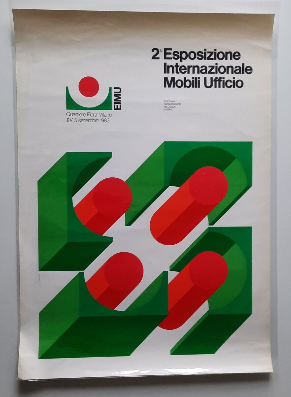 2° ESPOSIZIONE INTERNZIONALE MOBILI UFFICIO 1983 MANIFESTO AFFICHECm. 48 x 68, manifesto a colori.Buchi di puntina agli angoli, lievissime pieghe..Ulteriori dettagli e immagini a richiesta.