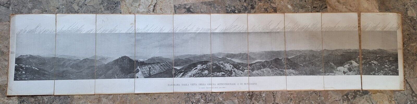 25° ANNIVERSARIO DELLA SEZIONE DI MILANO 1873 - 1898 PANORAMA DELLA GRIGNA SETTENTRIONALE O DI MONCODINECarta telata di cm. 185 x 40.Distacco dell'ultima parte del panorama, macchie ai margini.
