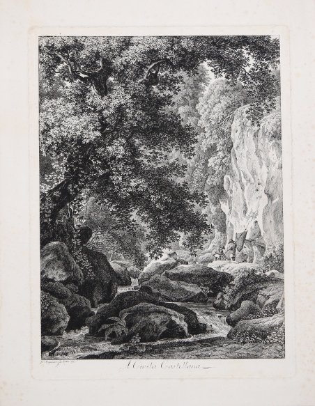 Veduta tratta dalla famosa serie di acqueforti "Collection ou suite pittoresque de l'Italie dessinées d'après nature et gravées à l'eau forte a Rome par trois peintres allemands AC Dies, Charles Reinhart, Jacques Mechau", 1792 -98, 1799.Si tratta di una serie di vedute tratta dalla natura e incise a Roma insieme a Johann Christian Reinhart, che aveva incontrato a Dresda, e Albert Christoph Dies. La raccolta venne pubblicata da Johann Friedrich Frauenholz a Norimberga nel 1799.Acquaforte, pieni margini, in ottimo stato di conservazione. Etching from the famous series "Collection ou suite pittoresque de l'Italie dessinées d'après nature et gravées à l'eau forte a Rome par trois peintres allemands AC Dies, Charles Reinhart, Jacques Mechau", 1792 -98, 1799.A series of 72 views taken from nature and engraved in Rome together with Johann Christian Reinhart, whom he had met in Dresden, and Albert Christoph Dies. The collection was published by Johann Friedrich Frauenholz in Nuremberg in 1799.Good condition. Cfr.
