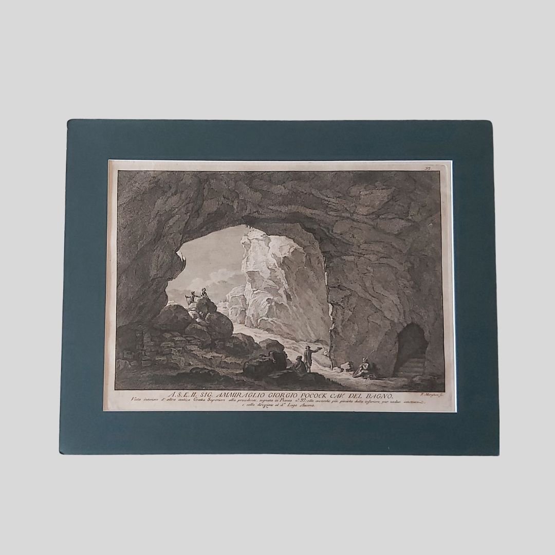 A.S.E. Il sig. Ammiraglio Giorgio Pocock Cav. del Bagno. Vista interiore d’altra antica Grotta Superiore alla precedente, segnata in Pianta n. 32°; ella ancorchè più picciola della inferiore, pur vedesi interrata e colla direzione al d° Lago d’Avern