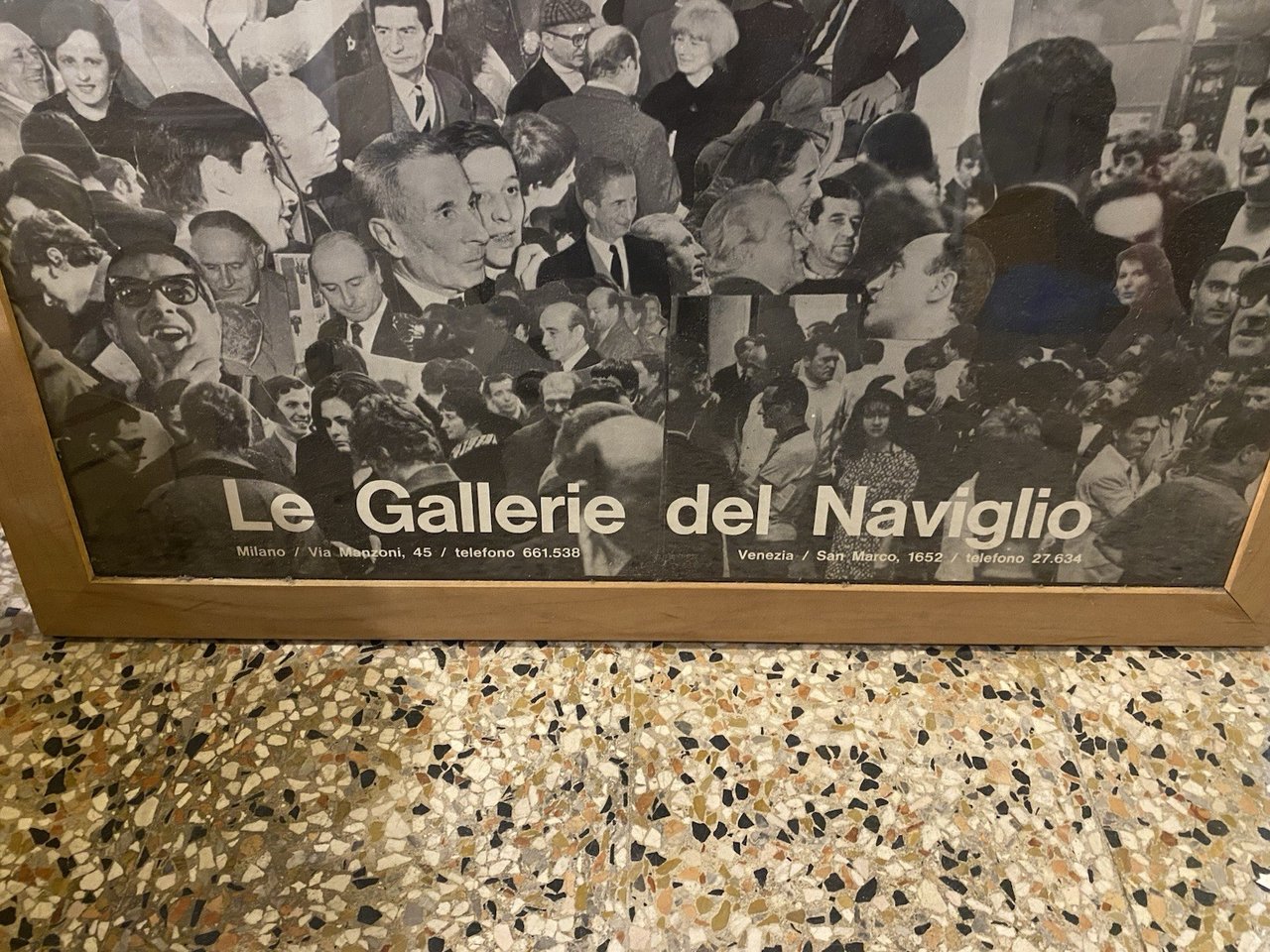 s.d. ma anni '70 Poster con i ritratti fotografici decine di artisti, Fontana Buzzati De Chirico Klein Vedova Capogrossi... che hanno lavorato con la Galleria del Naviglio in Milano e con la Galleria del Cavallino in Venezia fondate da Carlo Cardazzo Manifesto incorniciato Ritiro presso la nostra sede Ottimo stato