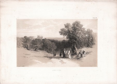 Veduta della città tratta da ' Illustrated Excursion in Italy, ' pubblicato a Londra da Thomas M'Lean nel 1843-46. Lear fu infaticabile e coraggioso viaggiatore, eseguì schizzi prima in Europa nel Mediterraneo poi in Egitto e nel Medio Oriente. Egli voleva, come si espresse, “topographise all the journeyngs of my life”. Per citare sommariamente, pubblicò ' Views of Rome and its Environs ' nel 1841, due serie di ' Illustrated Excursions in Italy, Journal of a Landscape Painter in Southern Calabria, Views in seven Ionian Islands ' e ' Journal of Landscape Painter ' in Corsica ' nel 1870. ' Litografia tinta, in ottimo stato di conservazione. View of the city, taken from ' Illustrated Excursion in Italy, published to London by Thomas M’Lean between 1843 and 1846. Lear was an indefatigable and courageous traveller and sketched first in Europe in the Mediterranean and then in Egypt and the Middle East. He wanted to, as he put it, “topographise all the journeyngs of my life”. To mention only a few, he published ' Views of Rome and its Environs ' in 1841, two series of ' Illustrated Excursions in Italy, Journal of a Landscape Painter in Southern Calabria, ' Views in seven Ionian Islands ' and finally ' Journal of Landscape Painter in Corsica ' in 1870. ' Lithograph, very good condition. Cfr.